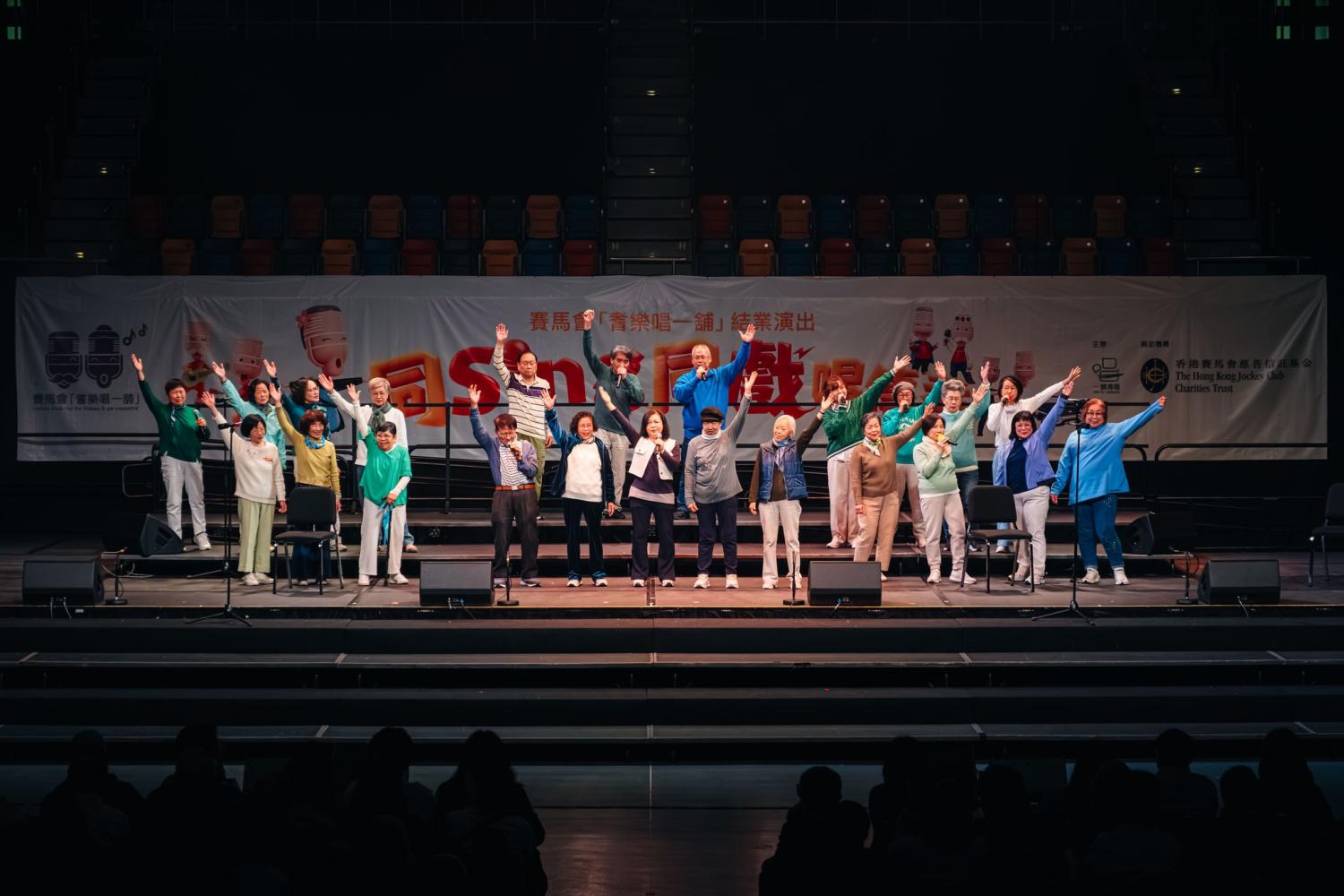 【賽馬會「耆樂唱一舖」結業演出《同Sing同戲唱傳「耆」》回顧】 《同Sing同戲唱傳「耆」》圓滿落幕🎉有賴長者學員、導師及台前幕後團隊全力投入🌟演出先能夠順利完成💪🏻一齊欣賞各表演單位享受舞台嘅身影啦!期待老友記繼續保持對無伴奏合唱嘅熱誠🎶未來喺不同舞台與場合,以歌聲延續今次的感動💓嚟緊仲有更多靚相,密切期待😌更多精彩相片:請按此--------------------------------------------------演出(按出場序):泰耆妙唱一舖導師:曹永浩、梅思源臻裝「歌啦」(明愛臻藝坊)導師:葉瑞芬、曹永浩元樂至叻Sing(香港基督教服務處 元州傲創)導師:孔君蔚、陳嘉煒梨耆反斗Sing(明愛梨木樹長者中心)導師:任歷豪、陳亦巴巴Bu大樂團(嗇色園主辦可康耆英鄰舍中心)導師:蘇梓安、羅熙彥唱出無限Fun(救世軍油麻地長者社區服務中心)導師:郭倩晴、李小琼Sing-a-歌(聖雅各福群會灣仔長者地區中心)導師:梅晉浧、劉啟燊、劉馬家儀銀駒愛Sing仁(仁愛堂胡忠長者地區中心)導師:黃晞澄、吳鳳儀銀色音樂盒(何梁潔庭自負盈虧活動中心)導師:鄧曉思Golden Soul A Cappella(香港基督教服務處 樂暉傲創)導師:張運兒、李惠琴Full La La(救世軍華富長者中心)導師:蔡頴姸、楊榮光奇妙人聲樂 Sing-shine Amigo(路德會富欣花園長者中心)導師:賈亦勤、陳念禧悠悠唱一舖(亞洲婦女協進會油麻地頤老中心)導師:梅晉浧、趙瑞君聲夢耆緣(香港婦女基金會何郭佩珍耆康中心)導師:劉兆康、梅晉浧--------------------------------------------------攝影:嘉霖、麥倡維、麥曉蕾 攝影統籌:張志偉@Moon 9 Image